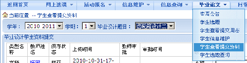 学生必须通过该功能提交毕业设计阶段资料,菜单如下: