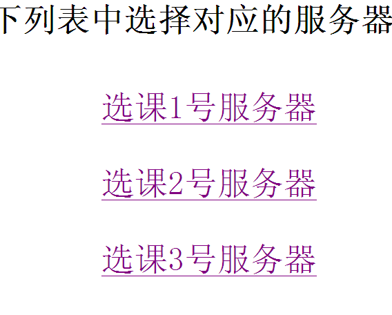 学生打开选课网页(http://210.40.32.10),出现可登录的三台服务器,如下: