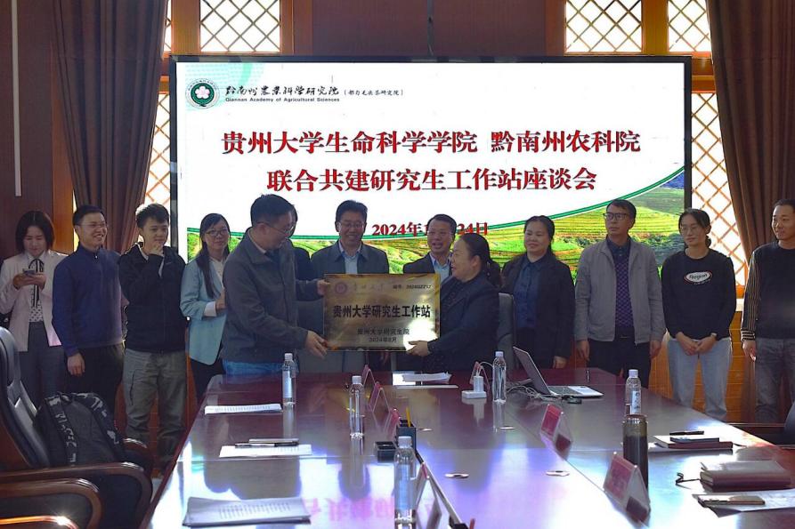 为进一步加强产学研合作,促进高校与企业在人才培养、科研创新等方面的深度融合,新葡萄8883官网AMG与黔南布依族苗族自治州农业科学研究院共建的“新葡萄8883官网AMG生物技术与工程研究生工作站”于2024年10月24日下午在黔南州农科院举行了共建交流会暨隆重的挂牌仪式。此次活动标志着双方在研究生培养与实践创新领域的合作迈出了关键而坚实的一步。