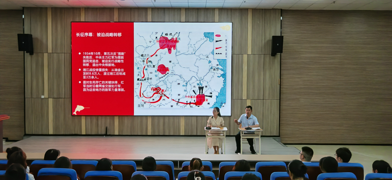 党委书记徐进和党委副书记熊静共同开展了一场主题为“弘扬长征精神和遵义会议精神 以昂扬斗志走好新时代的长征路”的理论宣传二人讲活动。此次宣讲活动在学院内引起热烈反响,为师生们带来了一场深刻的精神洗礼。