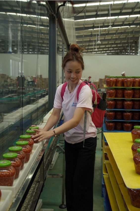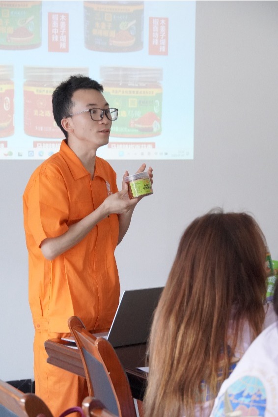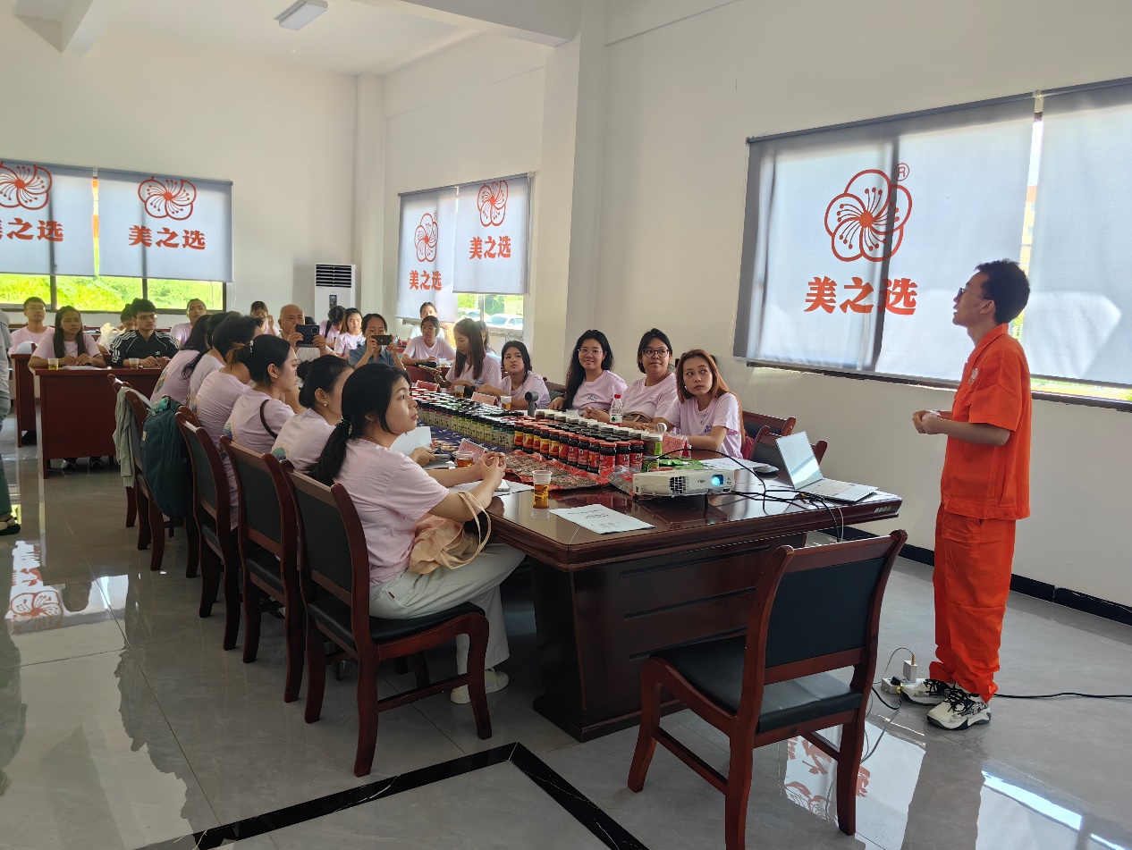 师生们零距离观摩辣椒炒制、研磨、分装及包装等生产环节,详细了解从原料处理到成品出库的完整流程。企业技术人员重点介绍了质量安全监测、留样制度与标准化管理体系,强调了产品可追溯性在食品安全保障中的核心作用。同时,企业展示的电商直播与线上销售模式引发广泛兴趣,学生们踊跃提问,对数字农业与跨境电商的融合表现出浓厚关注。